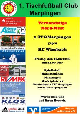 16.02.2018 VL 1.TFC Marpingen – RC Wiesbach 14:10 19. Februar 201824. Februar 2018 Joachim Schmidt Teilen mit:DruckenFacebookWhatsAppGefällt mir:Gefällt mir Wird geladen …
